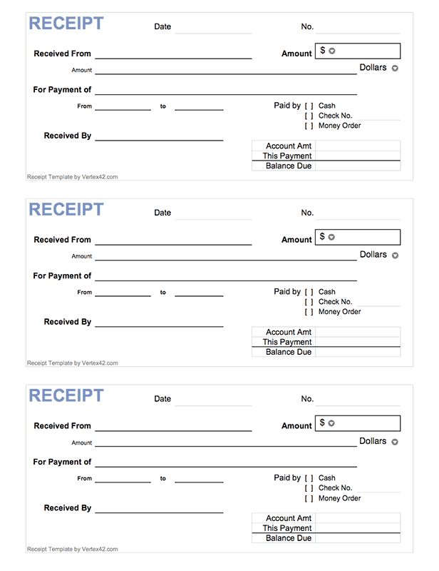 Source: templatearchive.com This simple payment receipt template includes three blank receipts per page, with sequential numbers, so that you create . A cash receipt template is used at the end of a sale.